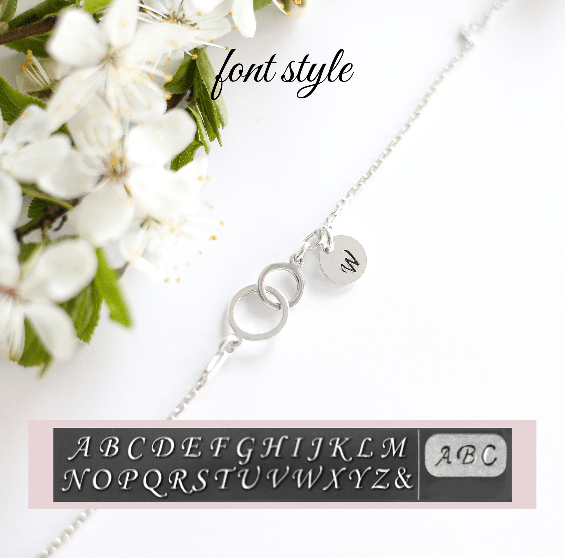 A beautiful symbol of connection, love, and unity — this interlocking circle bracelet is personalised with a delicate hand-stamped initial.