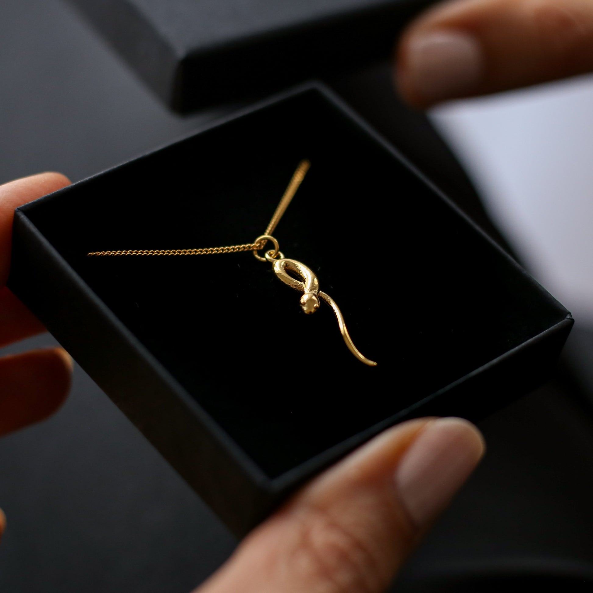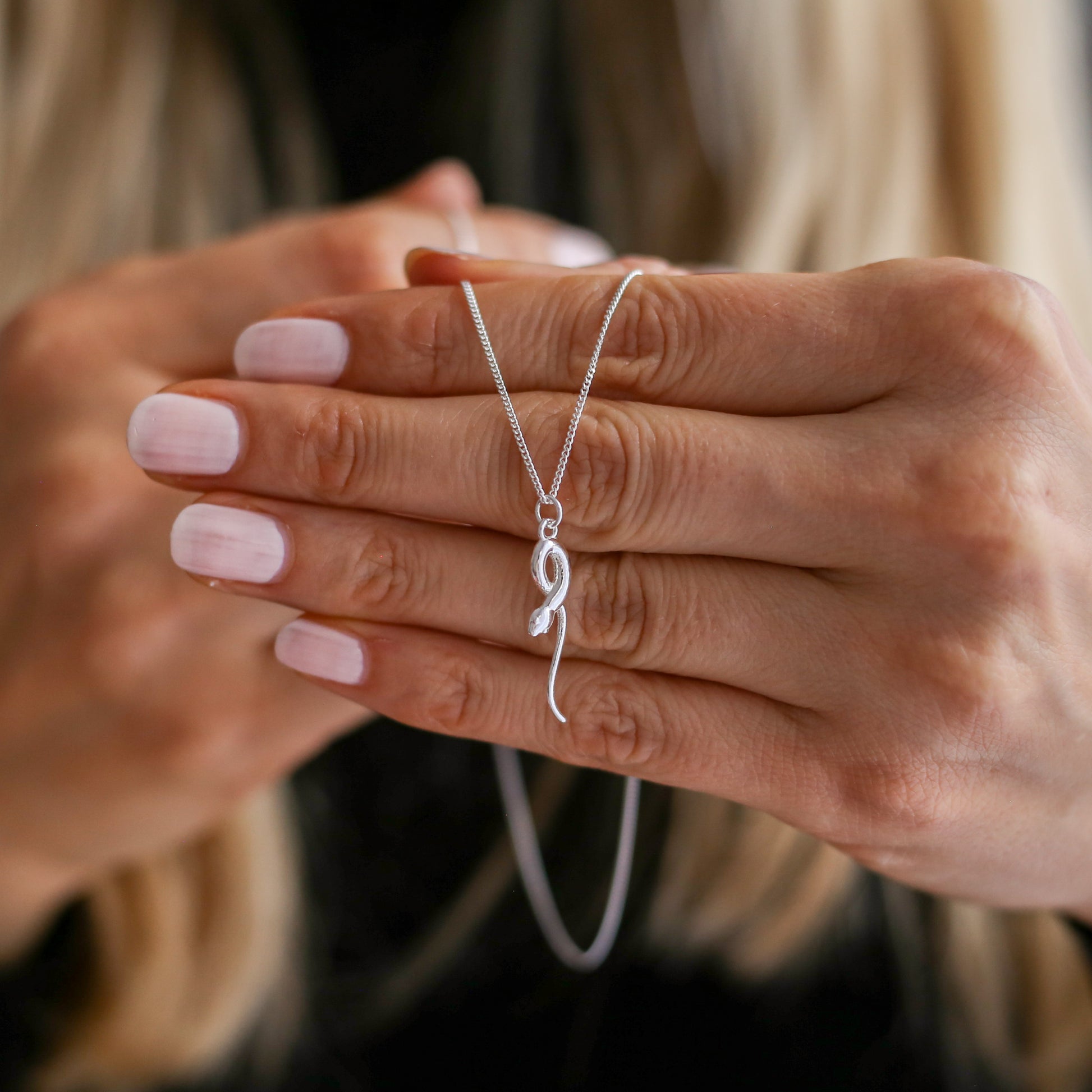 This necklace features a gorgeous snake pendant on a curb chain, great for layering and everyday wear.